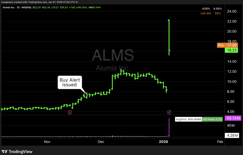 Names like Alumis Inc. (ALMS) – a tiny biotech in which Ross detected unusual insider activity during the last earnings season in November.